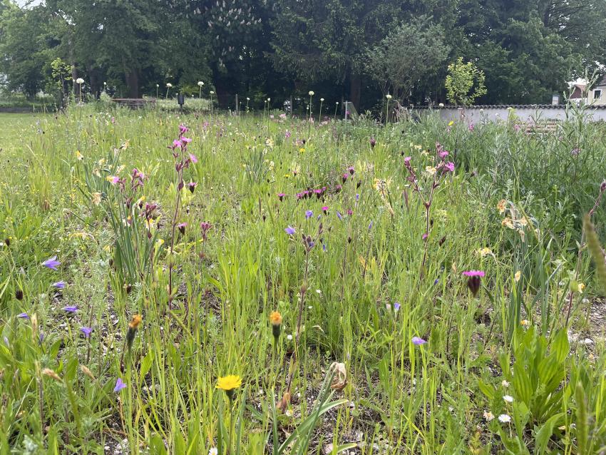 In Reisbach gab es eine ungenutzte Grünfläche gegenüber der St.-Michael-Kirche. Diese kurzgemähte Rasenfläche bot kaum Lebensraum für verschiedene Arten. Das hat sich nun geändert. Der Bauhof hat mit großem Engagement diese triste Fläche in einen lebendigen Lebensraum für Tiere und Pflanzen verwandelt. Durch die Ansaat von regionalem Saatgut wurde eine Blühfläche geschaffen, die sowohl Menschen erfreut als auch Tieren nahrung bietet. Zudem wurden Obstbäume gepflanzt, die ebenfalls zur Artenvielfalt beitragen. Das Herzstück der Fläche ist ein Habitat für zahlreiche Tierarten. Sandstrukturen bieten Platz für bodennistende Insekten, während Totholz aus einem alten Stamm und Wurzeln ideale Lebensbedingungen für Käfer und Pilze schafft. Ein Steinhaufen zwischen Gräsern dient als Versteck und Sonnenplatz für Eidechsen. Darüber hinaus wurde eine Reihe von Sträuchern gepflanzt, die in Zukunft mehr Unterschlupf für Vögel und Insekten bieten wird. Dieses Projekt zeigt, wie gemeinsames Engagement und Liebe zur Natur einen positiven Beitrag zur Umwelt leisten können und eine Fläche dabei noch super aussieht.