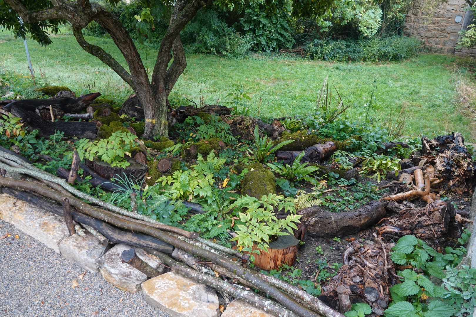 Wildblumenwiese mit Totholzgarten und Steinhaufen für Reptilien